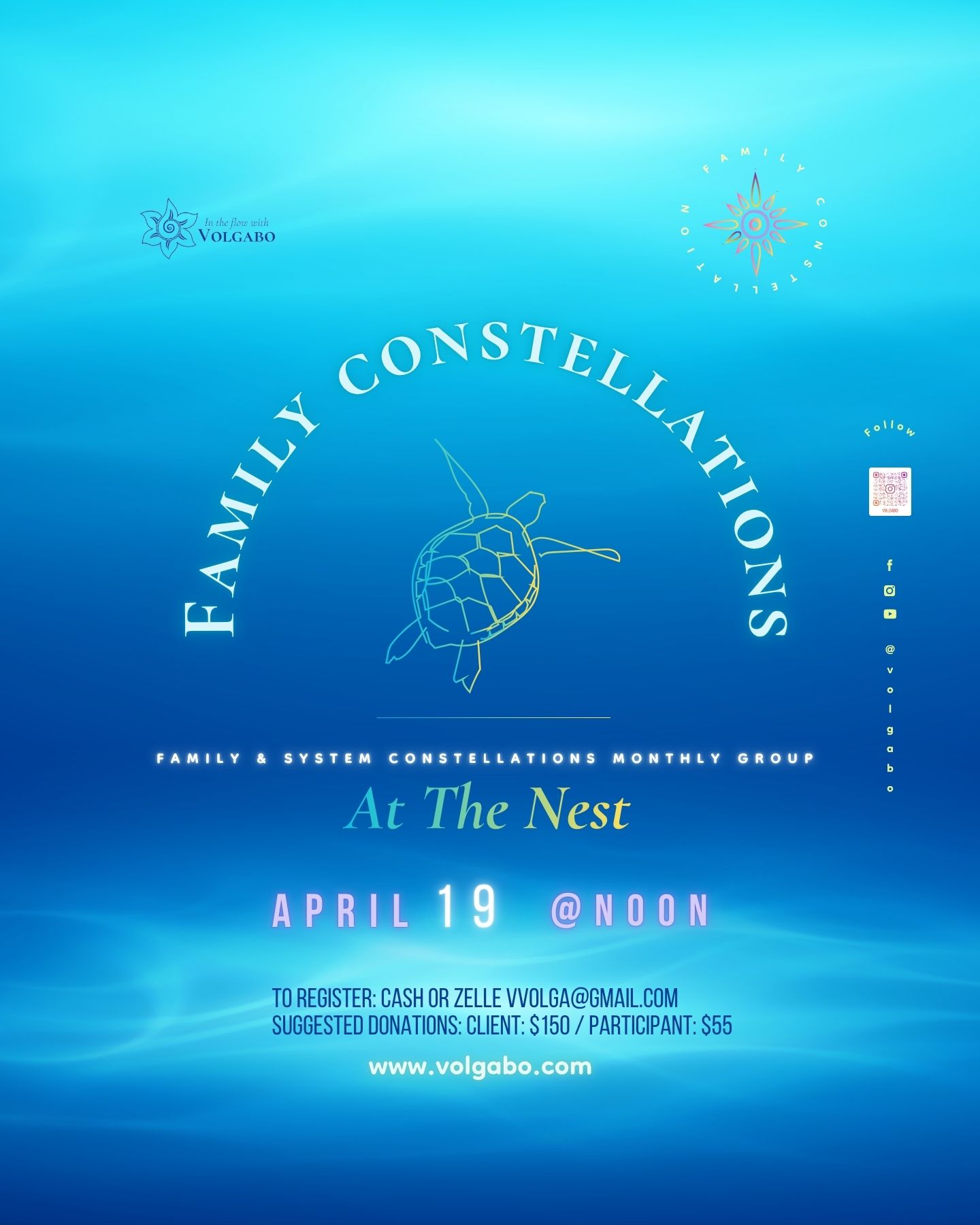 Join us for “system and family constellations” workshop on Sunday April 19th at 12:00 PM.